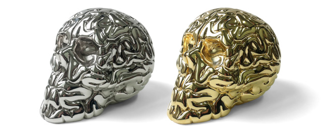 Emilio Garcia ci fa sapere che domani alla CONTEXT Art di Miami verrano presentate le colorazioni Chrome e 24K del suo Skull Brain. Questo due nuove varianti hanno una tiratura limitata di 20 pezzi ciascuna e come le precedenti versioni Pink e Graphite sono alte 7 pollici.