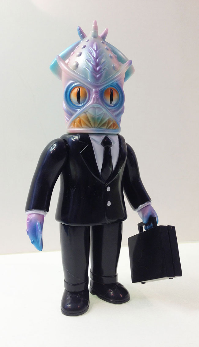 Questa sorta di kaiju incravattato è alto 21 cm ed è dipinto a mano. Nella confezione è inclusa una card numerata e firmata dall’artista americano.