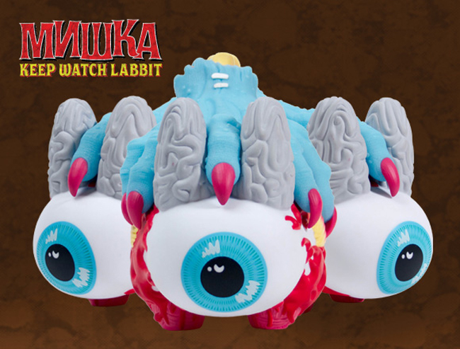 Per la realizzazione di questo toy Kidrobot è ritornata a collaborare con Mishka: il bulbo oculare è uno dei simboli più noti del brand newyorchese mentre la mano che afferra il Labbit, con quel suo azzurro particolare, è un omaggio agli zombi visti nei primi film di Romero.