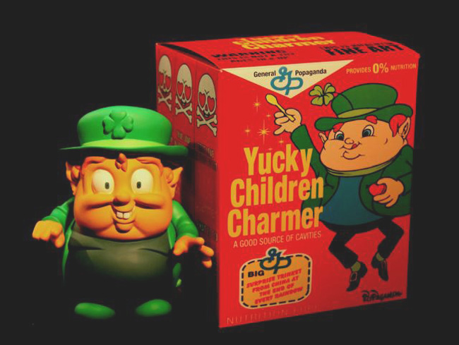 Quarta uscita per la serie Cereal Killers, dopo Fat Tony, Cap’n Cornstarch e Count Calorie, Yucky Children Charmer è l'”omaggio” dell’artista americano Ron English al leprechaun mascotte dei cereali Lucky Charms di General Mills.