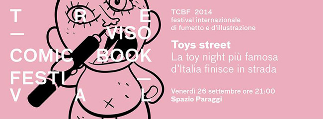 Ready, steady… go! Questo venerdì ci vediamo tutti in via Pescatori a Treviso per la sesta edizione della Toy Night del Treviso Comic Book Festival! Ancora una volta lo Spazio Paraggi aprirà le porte agli ospiti del festival, che dipingeranno dal vivo sui nostri Munny, e ancora una volta sarà l’occasione per incontrare un sacco di amici e amanti di design e illustrazione.