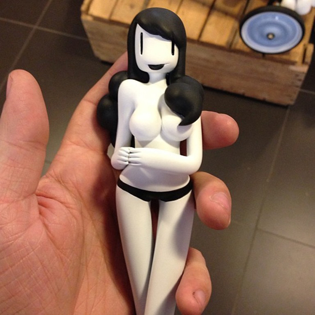 Finalmente un’immagine che ci mostra nella sua (quasi) interezza l’ultimo capolavoro di McBess! Sex Doll è stata presentata lo scorso 28 giugno alla mostra Dead Ahead tenutasi presso Dudes Factory, negozio/galleria di Berlino. Questa bambola è alta circa 8 pollici ed è stata prodotta in 250 pezzi; al momento si può trovare unicamente nel negozio berlinese ma probabilmente tra qualche settimana sarà disponibile anche sullo shop on line di McBess.