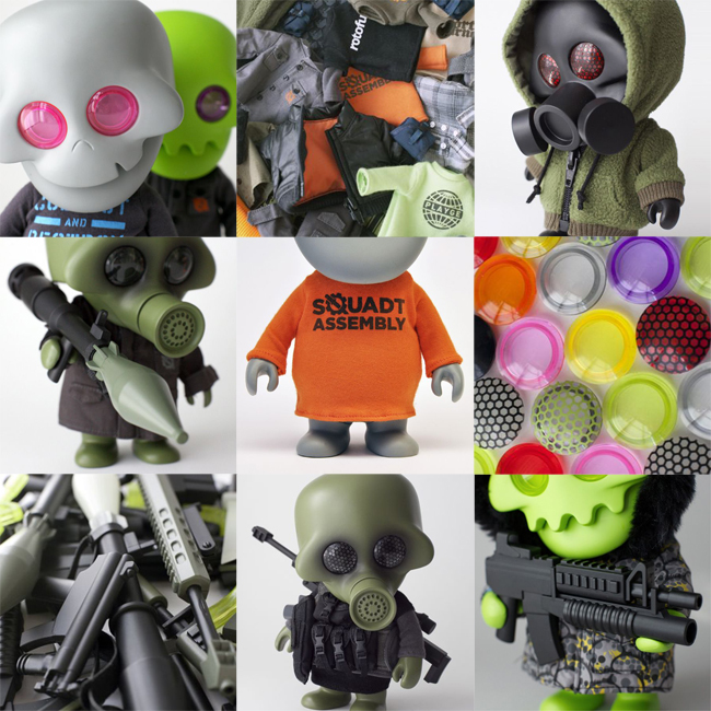 A 2 anni di distanza da Medium War, Rotofugi ha annunciato un nuovo evento nato dalla collaborazione con il toy designer americano FERG: Squadt Assembly. Fra il 5 e il 28 aprile 2013, i visitatori della galleria di Chicago potranno creare e comprare il proprio Squadt personalizzato, scegliendo fra decine di vestiti, armi ed equipaggiamenti, creati per l’occasione dalla toy factory di Threezero!